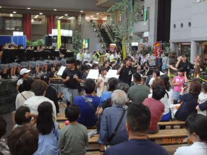 7月6日(土)14:25,パセオダイゴローにおいて本校吹奏楽部が社会を明るくする運動イベントに出演しました。オープニングは軽快なマーチからスタートしました。司会進行は2年生チューバパートA君,ユーフォニアムパートT君,パーカッションパートM君が担当演奏会を盛り上げてくれました。