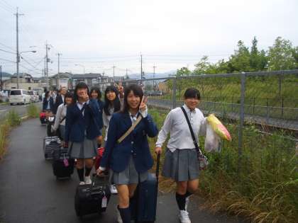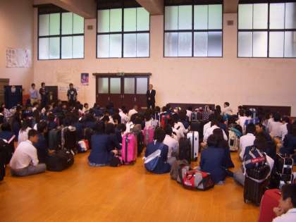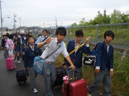 6月8日(水)午前7時,少し雨が降っていましたが,学校を出発するときには雨も上がり,順調なスタートがきれました。修学旅行の大成功を予感させるような天候の回復でした。たくさんの荷物を重そうに持っていましたが,表情は皆晴れ晴れとしてにこやかでした。