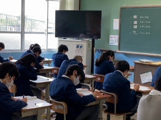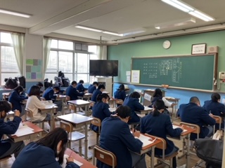 中学校は例年の国語と数学に理科が加わり,3教科での実施となりました。自らの現在の学習状況を知る上で大きな手掛かりとなります。生徒は真剣な眼差しで取り組んでいました。
