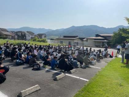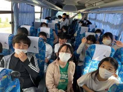 1年生は南山城学園に集合完了し,貸切バスでなごみの里前を出発しました。