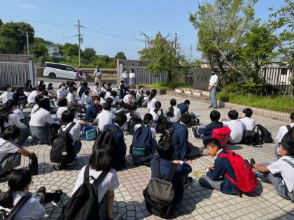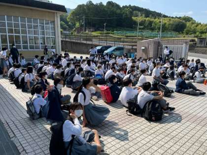 2年生は,学校へ一旦集合し出発式を行い,1年生と同様になごみの里前から貸切バスで神戸市内へ出発しました。