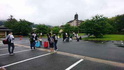 本日より3日間,信州(白馬)方面へ修学旅行を実施します。集合場所の山城学園に,集合時間の30分前から生徒たちは集まり始めました。