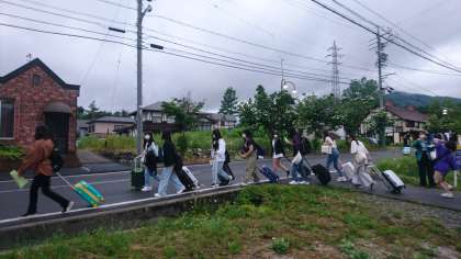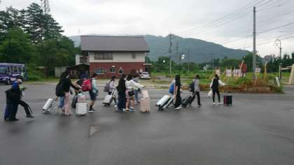 各ペンションのオーナーさんの案内で,各ペンションへ移動開始です。