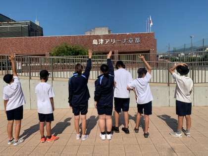 今朝、7時50分に参加者全員石田駅に集合し、会場の島津アリーナへ向け出発しました。今日は、最高気温38度の予報で、今年になって最も暑くなりそうです。水分をしっかり摂って、ケガがないように頑張って欲しいと思います。