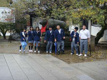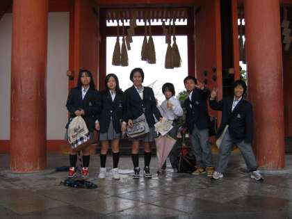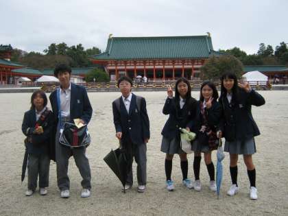 11月11日(金)、地下鉄石田駅から班ごとに平安神宮へと向かいました。京都市内の班別オリエンテーリングの出発です。八坂神社・南禅寺・知恩院・東本願寺の中から1ヶ所を班で選んで回り、金閣寺・銀閣寺・清水寺の中から1つ中に入って拝観をしました。写真は、平安神宮と北野天満宮でチェックを受けた時のものです。