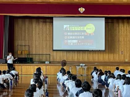 中でも、春日丘中学校区内の昨年1年間で自転車交通事故発生地点の写真紹介や、事故現場に共通するキーワードなどを学習しました。
