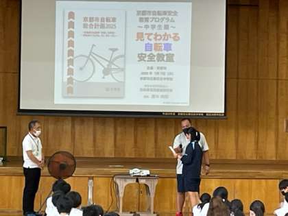 昨日の5限目に、1年生全員を対象に自転車安全教室を実施しました。