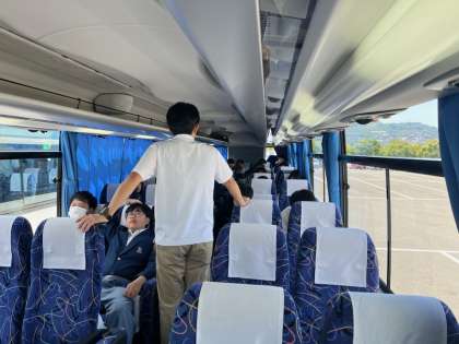 長崎での班別研修が終了しました。予定通り集合完了し、これから民泊の入村式が行われる松浦へ出発します!!