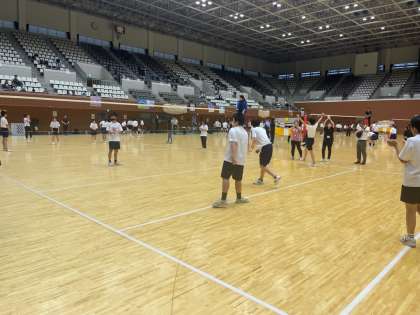 ボッチャの次はバレーボールです。こちらも他中学校の生徒と協力し、勝利しました!