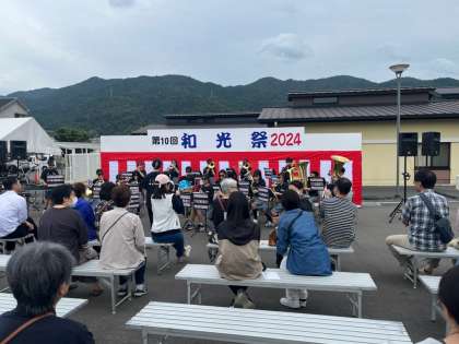 10月26日(土)に南山城学園で実施された、和光祭でのオープニングで演奏を行いました。10/20に行われた、吹奏楽定期演奏会で3年生部員が引退して、1・2年生での初めての演奏会となりましたが、みんなでまとまった素晴らしい音色を披露してくれました。会場の皆様にも親しみのある楽曲が多く、大いに盛り上がりました。これからも、練習を重ねて、演奏活動を頑張って欲しいと思います。