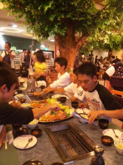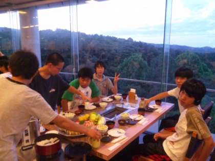 いよいよ待ちに待った夕食です。本日のメニューは、バーベキューです。窓からの景色も最高です!!今日1日に感謝して、友達とゆっくりと楽しく今宵のひと時を過ごしてください。