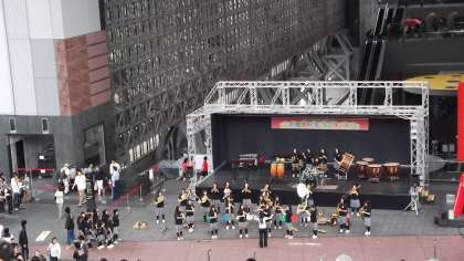 6月10日(日)、京都府吹奏楽連盟主催の「駅ビルコンサート」がありました。春日丘中学校は8番目の出番で、11時49分からの出演でした。この演奏会は1年生部員のデビューでした。皆元気良くはつらつと演奏していました。