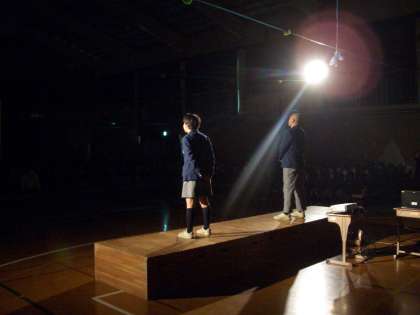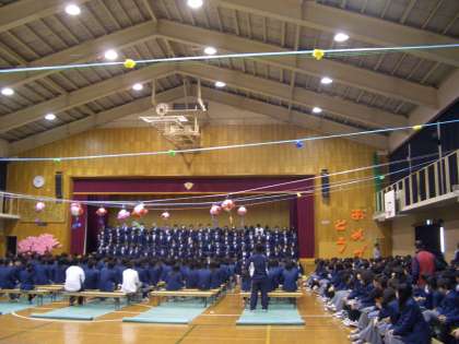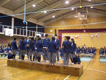 卒業式を明後日に控えた3月13日(水)の1・2限、体育館で全員参加による卒業式=「3年生を送る会」が行われました。生徒会本部企画の「太鼓」からはじまり、お世話になった先生方からのビデオレターも流れました。大変懐かしい思いがしました。