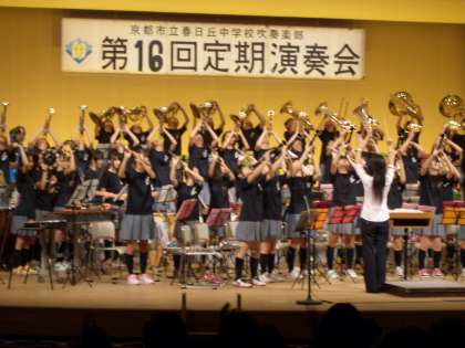 9月4日(土)13:30から,東部文化会館で吹奏楽部の「第16回定期演奏会」が行われました。3年生の引退式もかねた,感動の「定演」でした。第1部オープニングでは「校歌」の演奏から始まり,第2部では65名全員の「合唱」もありました。最後の第3部は,12曲の演奏もあり,あらためてレパートリーの多さに感心しました。