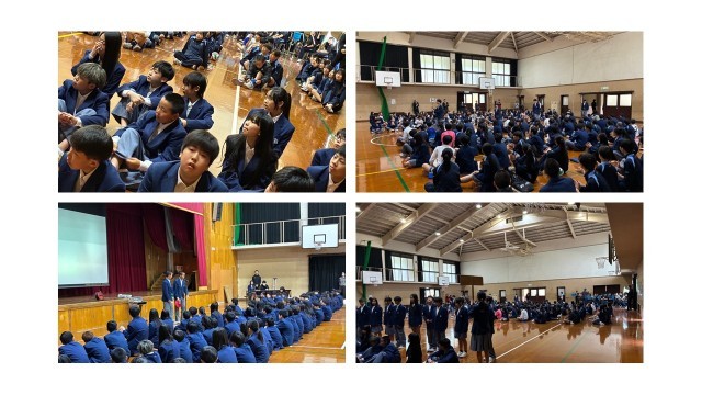 月曜日より3学年そろっての学校生活が始まりました。生徒会や2・3年生が中心となり新入生歓迎会が実施されました。体育館に全校生徒が集まり、春日丘中学校の学校生活、授業や部活動についての紹介、生徒会委員会の紹介など分かりやすく1年生に説明してくれました。
