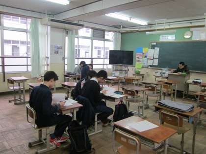 本日,3年生を中心に土曜学習を行いました。入試対策問題に取り組んだり,自主学習を行ったり各自で学習内容を決めてしっかりと取り組んでいました。また,わからないところを担当の教員やボランティアの先生に質問するなど積極的に学習に取り組めていました。体調管理に気を付け,第一志望突破に向けて準備をしっかり行いましょう。