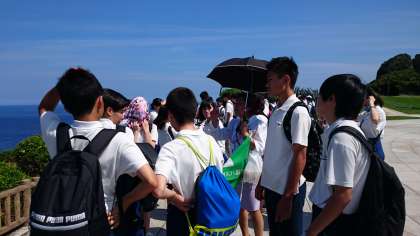 平和祈念公園で当時の地上戦の話を伺っています。