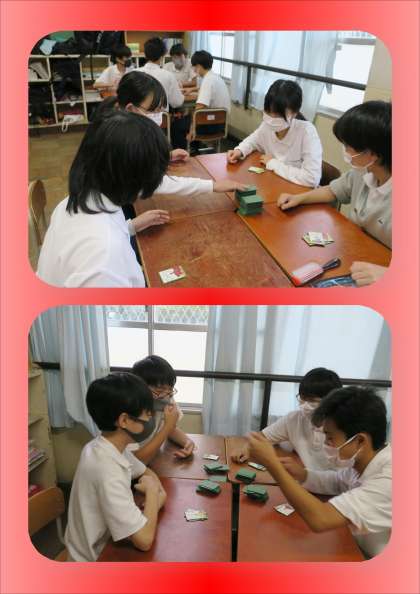 緊急事態宣言が解除されたため,感染対策を講じながら,昨日の国語の授業では「百人一首」と「坊主めくり」に取り組みました。