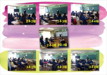 始業式では今年度から新たに変更した「育成学級を1組とすること」「3年生二人担任制とすること」「総合的な学習の時間を『共創(きょうそう)』と呼称すること」などを説明しました。