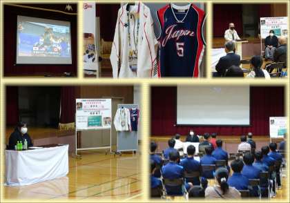 講師に2004年アテネパラリンピック女子車椅子バスケットボール日本代表の阪根泰子さんをお迎えし、障がいを持っての葛藤や車椅子バスケットの出会い、練習の大変さ、車椅子から見る便利なこと不便なことなどをお話しいただきました。