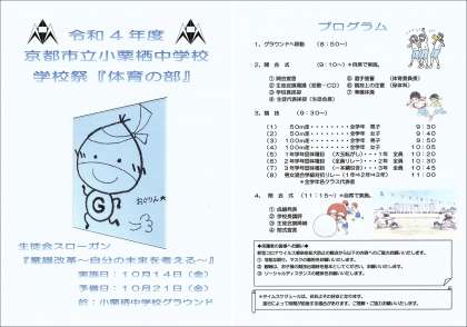 先月の学校祭文化の部に続き、14日(金)に体育の部を開催する予定です。(雨天順延の場合21日)