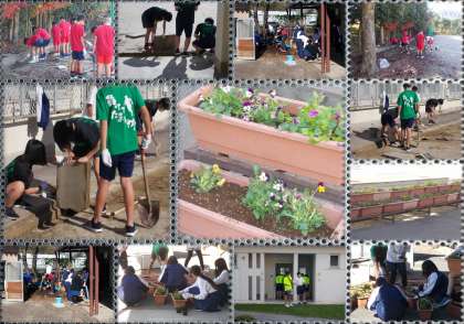 部活動清掃と花植え