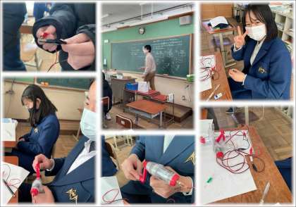 理科の授業では,電流を流し「抵抗」の実験を行っていました。