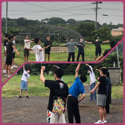 少し眠いですがみんなでラジオ体操です。