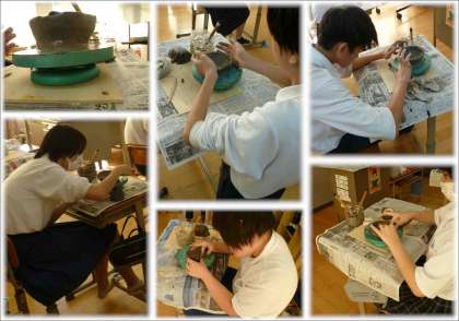 今日は接着剤とひも作りをしました。ひも作りには、土台をヘラで傷つけた後、接着剤をつけ、内側と外側をなじませるという工程があります。
