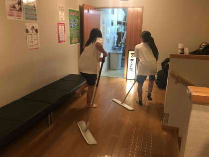 温泉施設では、清掃やロウリュウのお手伝いをしていました。お疲れ様です。