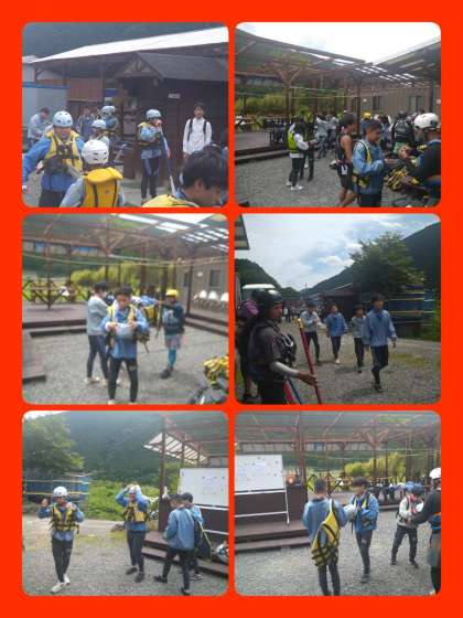 ウエットスーツに着替え、ライフジャケット、パドルを手に、ラフティング会場に行きます!