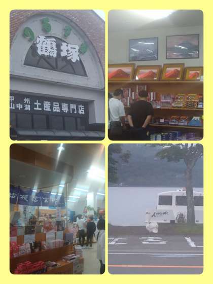 山中湖到着。鶴塚ドライブインでおみやげ買い物中です。