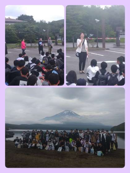 入村式を行い、それぞれのペンションに出発しました。富士山をバックにして学年写真を撮れました!