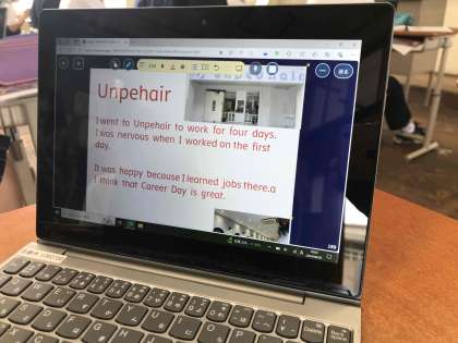 英語の時間には先週実施したチャレンジ体験についての資料を作成していました。仕事、できそうな空気が出ていますね。