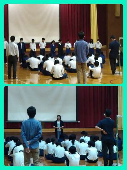 6月4日に修学旅行解団式が行われました。実行委員から一言ずつ発表があり、実行委員長からは3日間を通しての感想を発表してくれました。実行委員の中からは「修学旅行のスローガンである【富士山よりも美しく】を修学旅行だけではなく、今後の学校生活でも心掛けていきましょう」という言葉もありました。