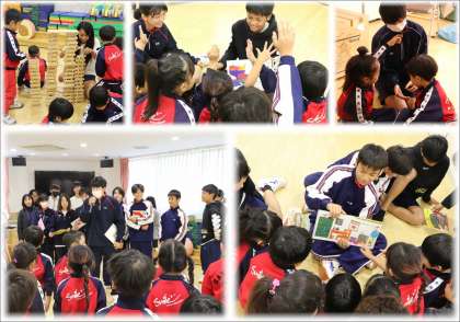 絵本の読み聞かせでは,園児たちが聞き取りやすいように大きな声でゆっくりと読む姿やクイズを出して楽しませながら読む姿など様々な工夫が見られました。なかには「もう一回読んで!」「次はお兄ちゃんの本がいい!」など園児たちの嬉しそうな姿がたくさんありました。