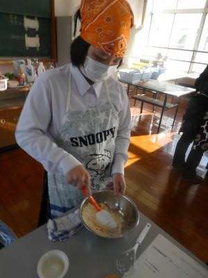 ホットケーキミックスを材料とともに混ぜ、形を整えてから油で揚げました。