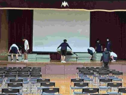 会場準備を男子バレー部が手伝ってくれました!