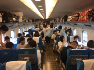 新幹線内の様子です。生徒の皆さんの楽しそうな雰囲気が伝わってきます。昼現在,予定通り新幹線を下車して昼食場所にむかっています。