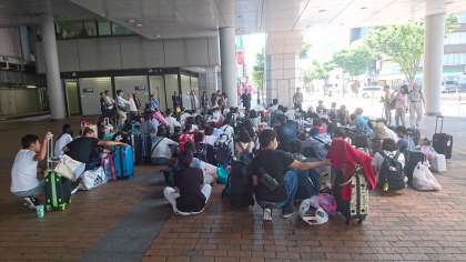 写真は解団式の様子です。行程上,小倉駅で行いました。すでに新幹線に乗車しており,京都駅に向かっております。京都駅到着後はバスに乗りかえ,19時ごろ解散場所到着の予定ですすんでいます。