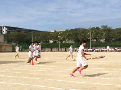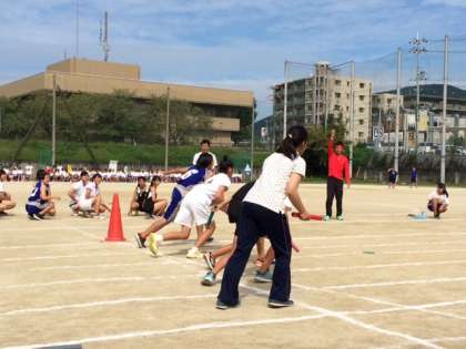 午後の部 部活動リレーの様子です。教職員チームも参加しました。