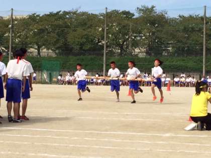 1年団体競技「台風の目」と縦割りリレーの様子です。