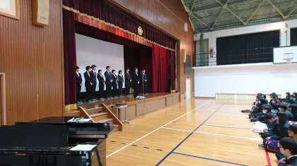平成30年度がスタートしました。学級発表のあと着任式・始業式が行われました。始業式では、校長先生から2018栗(Rits)スローガン「みんなが笑顔でこれて笑顔ですごせて笑顔でかえれる学校」が発表され、1組・2年・3年の代表生徒から今年の決意表明がしっかり行われました。担任・部活動顧問の発表と続きましたがしっかり集中していた態度は立派でした。教育委員会から参観に来られましたが態度の素晴らしさに感心されていました。和やかな温かい雰囲気でスタートできたことをうれしく思います。ともにがんばりましょう。