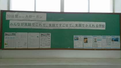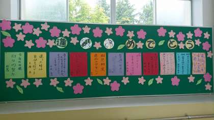 各学年の掲示板には、学年の先生の思いがこもっていて温かい空気が流れています。上から1年・2年・3年です。