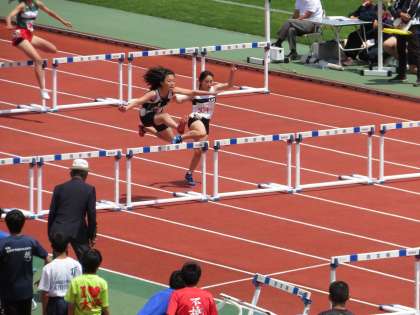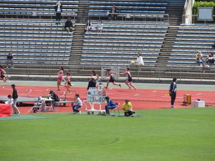 女子4×100mの2走から3走、男子400m、女子100mハードルの画像です。決勝進出はできませんでしたがみんなさわやかな走りでした。