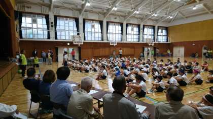 昨日、池田東少年補導委員会主催の「第34回ドッチボール大会」が開催されました。あいにくの雨模様でしたが、約140名の児童が参加し盛大に行われました。低学年と高学年にわかれて対戦しましたが笑顔いっぱいのドッチボール大会でした。地域の皆様ありがとうございました。