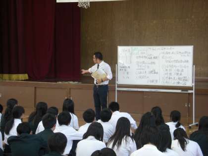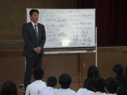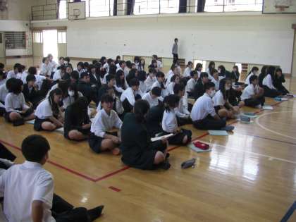 今日の5時間目はチャレンジ体験の激励会でした。校長先生からのお話もいただきました。