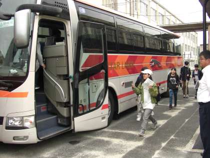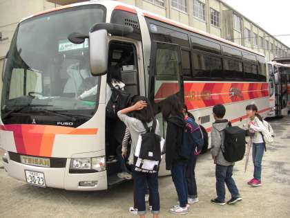 今日は1年生は校外学習です。「青少年野外活動総合センター 友愛の丘」へバスで向かいます。現地では,各班ごとに飯盒炊さんに取り組んだり,集団行動のルールを学んだりします。今日はあいにくの雨ですが楽しんできてください。