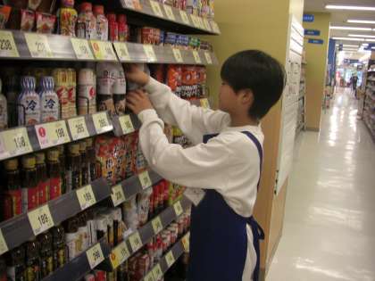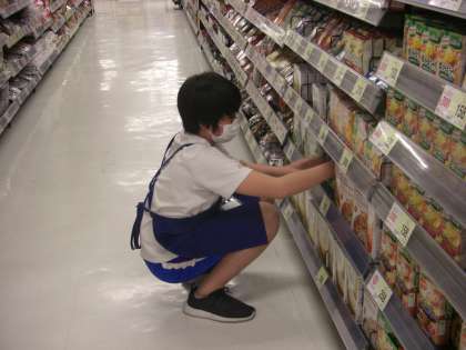 スーパーでの風景です。商品の整理に一生懸命です。