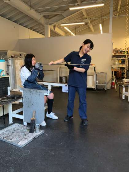 昨日の集合写真と吹きガラス体験〜世界に1つだけのグラスです。